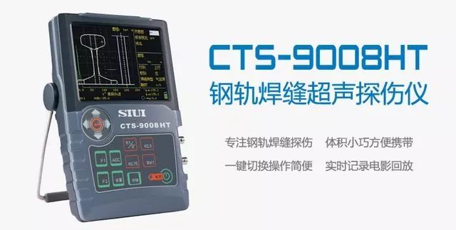 CTS-9008HT探伤仪根据钢轨焊缝探伤工艺要求量身定做,具有小体积,轻重量,低功耗,高性能的特点,支持多通道工作,探测钢轨焊缝不同区域时无需更换探头、更改设置参数,一键转换通道,便可完成焊缝轨头、轨腰、轨底不同区域的检测,更具有焊缝B显标记图功能,用于在钢轨焊缝工字型截面图上对报警信号进行分布情况的自动标记,检测过程具有步骤提示示意图,使检测步骤及结果一目了然。